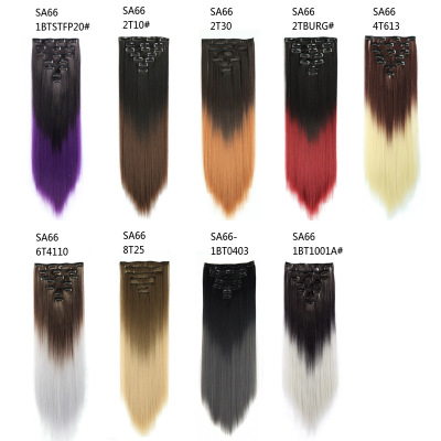 22 inch Ombre Clip in Hair Synthetic Extension Hairstyle Full Head16 Clips 7Pcs/Set Synthetic Hairpieces For Woman