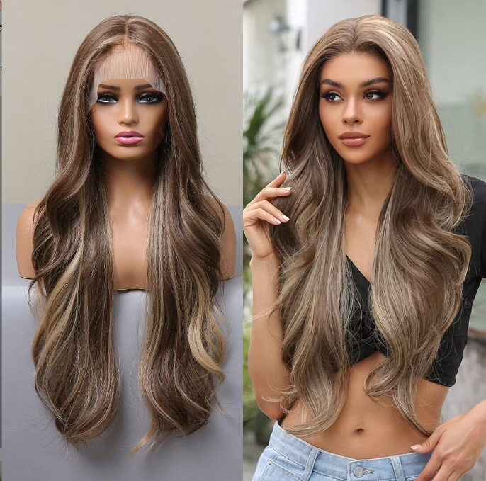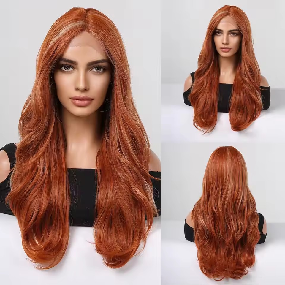 1,Fashionable Style: Long wave Lace synthetic wigs with popular color to make you look more lively and pretty.