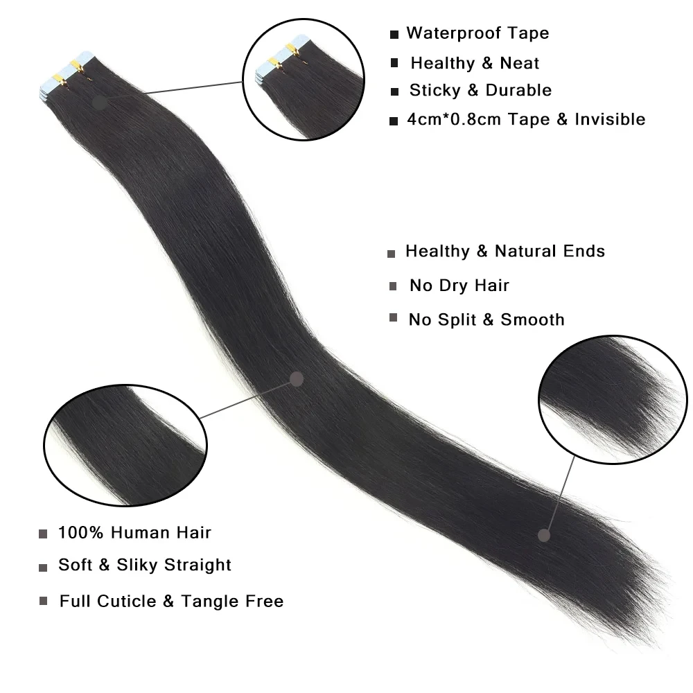 Natural Black Curly Tape in Extensions Human Hair Remy Kinky Curly Tape in Extensions 10-30 inch Curly 100G/Pack