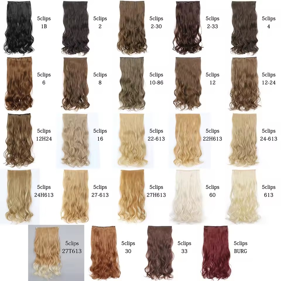 22 inch Synthetic one piece 5 Clips Long Wave Hair Extensions Clips in High Temperature Fiber extensuon Black Brown Hairpiece
